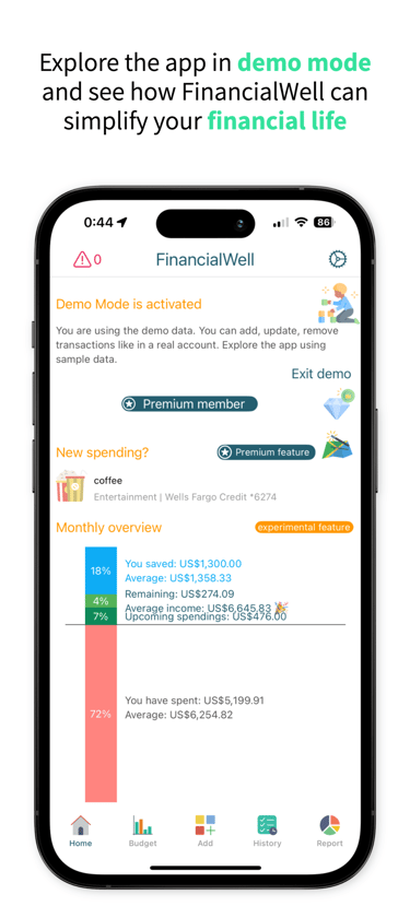 Explore premium features using our demo database and discover the unlimited possibilities FinancialWell offers.